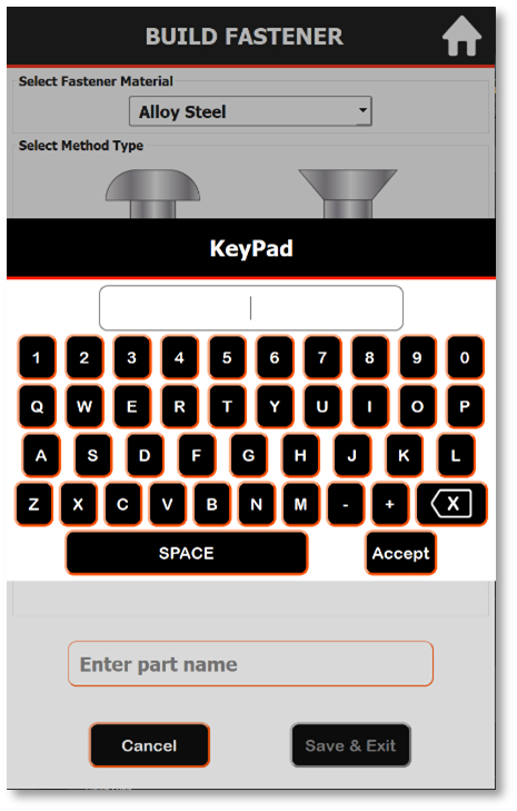 Enter a part/fastener name and press “Save & Exit.” The TSD should display a confirmation that the built fastener was added to the library. All built fasteners will then be accessible via the Fastener Library.