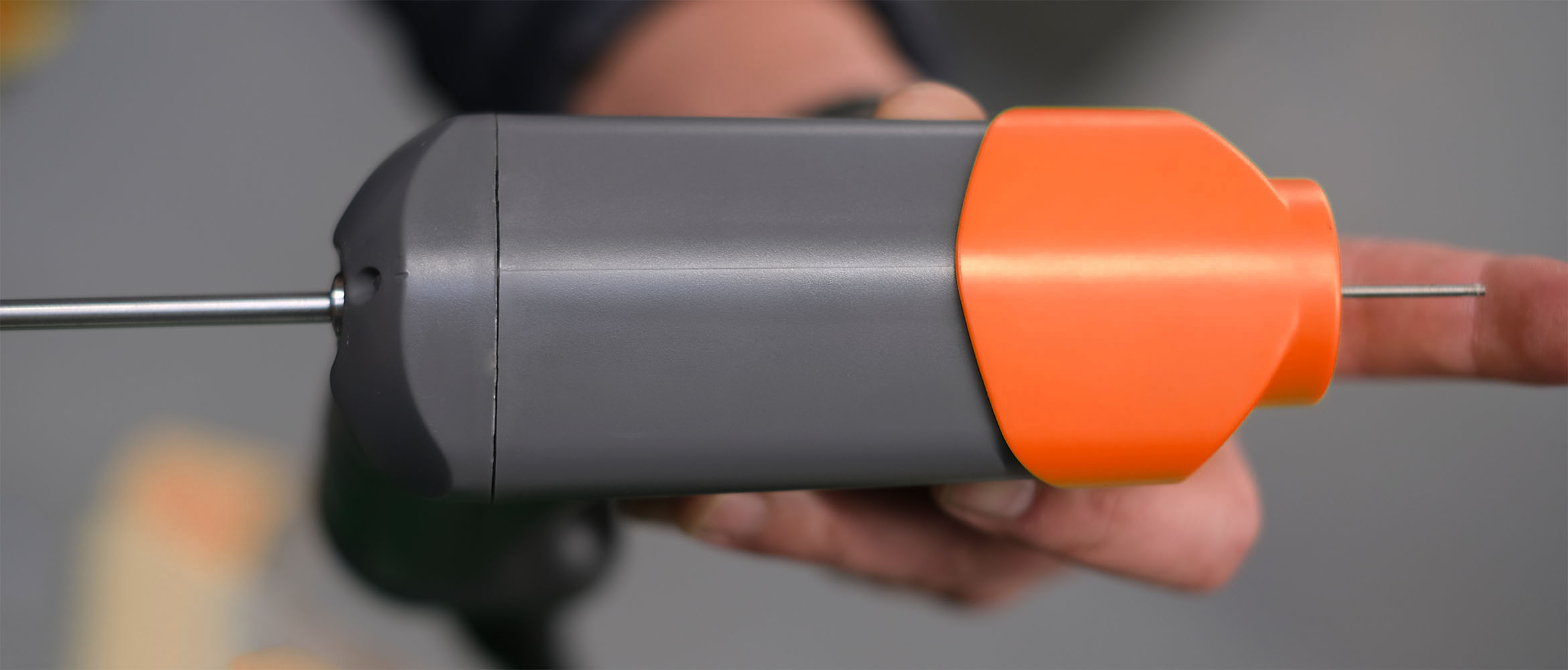 Insert a T20 Torx L-Key in the rear of the hand-tool to loosen the ground pin from its CG seated position. Once it is loose, press the front of the ground pin in, until it reaches the rear set of threads on the Hand-Tool, continue to unscrew the ground pin using the T20 Torx L-Key. Once the rear of the ground pin is completely out of the hand-tool, gently pull it out.