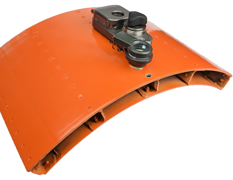Head tilt capability for curvature compensation on leading and trailing edge applications.