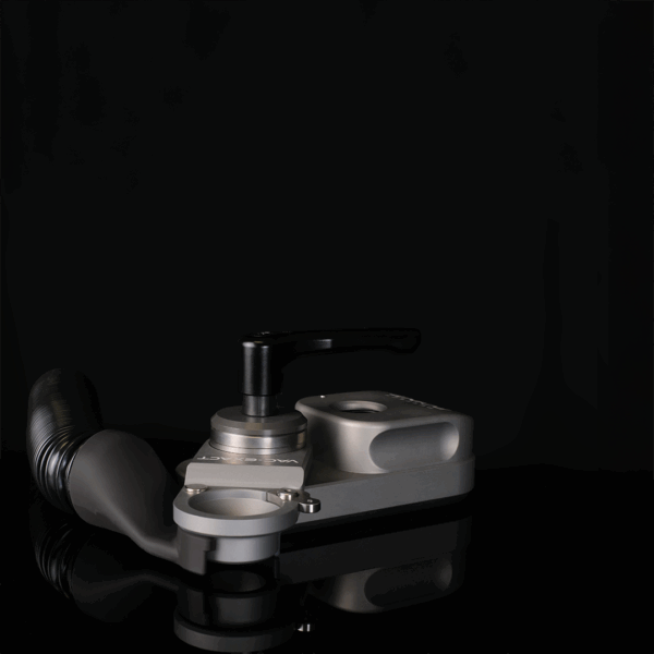 Powered by an external venturi vacuum module connected to shop air, the locator clamps firmly to flat or curved surfaces. A manual lever/button vents suction for repositioning, then re-engages to lock in place—no motors or electronics required.
